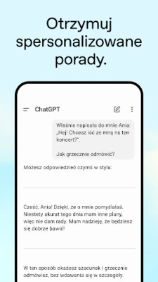 Ciesz się swobodą komunikacji, gdziekolwiek jesteś. Tryb głosowy w ChatGPT pozwala na dynamiczne rozmowy w podróży, dostarczając bajki na dobranoc dla Twoich pociech lub pomagając rozstrzygnąć każdą dyskusję przy stole. Co więcej, aplikacja potrafi "widzieć" to, co Ty – wystarczy przesłać zdjęcie, aby z łatwością przetranskrybować odręczne notatki z przepisu babci lub natychmiastowo uzyskać informacje o fascynującym zabytku, który właśnie podziwiasz.