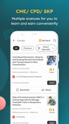 Sercem Docquity jest dynamiczna wymiana wiedzy. Uczestnicz w pogłębionych dyskusjach nad przypadkami klinicznymi, czerpiąc wsparcie od doświadczonych rówieśników i specjalistów, którzy rozumieją wyzwania Twojej praktyki. Z łatwością zdobywaj certyfikaty CPD/CME, uznawane przez czołowe stowarzyszenia i instytucje medyczne, co przyspieszy Twój rozwój zawodowy. Dołącz do angażujących webinariów prowadzonych przez liderów branży, dostępnych na żywo lub na żądanie, oraz eksploruj krótkie, instruktażowe nagrania Doctalks, tworzone przez ekspertów z Twojej dziedziny. Ponadto, pogłębiaj swoją wiedzę we własnym tempie, korzystając z obszernej wirtualnej biblioteki zawierającej czasopisma, publikacje i zarejestrowane sesje.