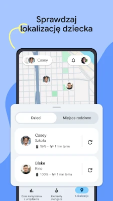 Bądź zawsze w kontakcie ze swoimi dziećmi. Dzięki Family Link łatwo sprawdzisz ich aktualną lokalizację na mapie, gdy mają przy sobie swoje urządzenia, co daje Ci poczucie bezpieczeństwa. Otrzymuj przydatne powiadomienia, na przykład gdy dziecko dotrze do określonego miejsca lub je opuści. Możesz także zdalnie aktywować dzwonek na zgubionym urządzeniu lub sprawdzić poziom naładowania baterii, aby mieć pewność, że zawsze masz z nimi łączność. Family Link to więcej niż kontrola – to wsparcie dla bezpiecznego i świadomego dorastania w cyfrowym świecie, pozwalające dbać o dobro Twojej rodziny.