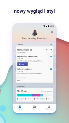 Aplikacja Microsoft Launcher to także Twoje centrum informacji i produktywności. Bądź zawsze na bieżąco dzięki spersonalizowanemu kanałowi wiadomości, którego zawartość synchronizuje się płynnie na wszystkich Twoich urządzeniach, zapewniając spójne i wygodne czytanie. Niezależnie od tego, czy przeglądasz treści, czy pracujesz, aplikacja Microsoft Launcher oferuje pełną swobodę widoku – zarówno w orientacji pionowej, jak i poziomej. Dodatkowe funkcje, takie jak szybkie wyszukiwanie głosowe, łatwy dostęp do kontaktów, kalendarza czy aktualnych warunków pogodowych, sprawiają, że codzienne zarządzanie telefonem staje się intuicyjne i niezwykle efektywne.