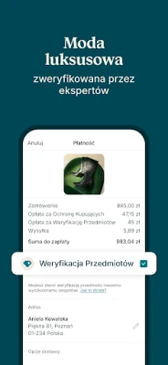 Dla jeszcze większej pewności, zwłaszcza przy zakupie wartościowych przedmiotów, Vinted oferuje dwie specjalistyczne usługi weryfikacji. Weryfikacja Przedmiotów jest dedykowana artykułom designerskim, gdzie nasz zespół ekspertów sprawdzi ich autentyczność. Natomiast Weryfikacja Elektroniki to gwarancja, że zakupione urządzenie elektroniczne jest w pełni zgodne z opisem – specjaliści ocenią jego działanie, stan i oryginalność. Przedmiot trafi do Ciebie wyłącznie po pomyślnym przejściu kontroli, w przeciwnym razie otrzymasz pełny zwrot środków. Opcję weryfikacji możesz łatwo dodać w podsumowaniu zamówienia.