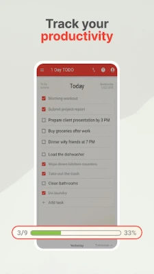 Przejmij kontrolę nad dniem z 1 Day TODO: Daily Task Manager. Ten prosty menedżer zadań i lista kontrolna pomaga skupić się na tym, co naprawdę ważne. Zarządzaj czasem, zwiększaj produktywność i realizuj priorytety – w pracy i życiu osobistym.