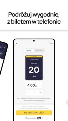 Kupowanie biletów to kolejna rewolucja z Jakdojade. Koniec z poszukiwaniem drobnych, staniem w kolejkach czy martwieniem się o wydruk. Bezpośrednio w aplikacji nabędziesz bilety miejskie na komunikację w największych aglomeracjach, a także bilety kolejowe na połączenia realizowane przez PKP Intercity, Koleje Mazowieckie, Koleje Małopolskie oraz SKM. Wszystko w jednym miejscu, dostępne w ciągu kilku sekund, co czyni Jakdojade niezastąpionym partnerem każdej podróży.