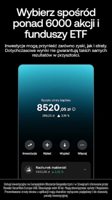 Rozwijaj swoje możliwości finansowe, odkrywając świat inwestycji giełdowych, dostępnych już od 1 EUR. Z Revolut zyskujesz dostęp do ponad 2000 akcji najpopularniejszych firm na świecie, a także korzystasz z comiesięcznego limitu bezpłatnych transakcji (należy pamiętać o ryzyku utraty kapitału oraz ewentualnych innych opłatach). Poszerzaj swoją wiedzę dzięki dostępowi do kursów i quizów inwestycyjnych. Twoje bezpieczeństwo jest dla nas kluczowe. Jako bank, którego usługi świadczy RSEUAB, Revolut podlega ścisłym regulacjom prawnym, a Twoje środki są objęte gwarancją litewskiej spółki państwowej ds. ubezpieczeń depozytów i inwestycji. Skorzystaj z zaawansowanego systemu zapobiegania oszustwom, który ostrzega przed ryzykiem, oraz funkcji, takich jak blokowanie/odblokowywanie kart, ustawianie limitów i wykorzystywanie jednorazowych kart wirtualnych dla maksymalnej ochrony. Bezpieczeństwo danych biometrycznych i kodów dostępu, a także całodobowe wsparcie klienta w aplikacji, zapewniają pełen spokój ducha.