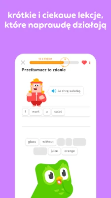 Duolingo przełamuje bariery językowe, oferując unikalną metodologię, która sprawia, że opanowanie nowego języka staje się wciągającą przygodą. Dzięki starannie zaprojektowanym lekcjom, łączącym elementy zabawy z efektywną nauką, interaktywne ćwiczenia i sympatyczne postacie towarzyszą Ci w rozwijaniu umiejętności mówienia, czytania, słuchania i pisania. Metodologia Duolingo, opracowana przez czołowych ekspertów, jest dowodem na to, że skuteczna nauka może być jednocześnie przyjemna, kładąc nacisk na trwałe zapamiętywanie i praktyczne zastosowanie wiedzy, co potwierdzają realne sukcesy naszych użytkowników. Monitoruj swoje postępy, wyznaczaj cele i celebruj osiągnięcia, które skutecznie motywują do regularnych ćwiczeń, zamieniając naukę w satysfakcjonujący codzienny rytuał.